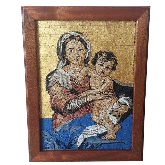 Virgin Mary with the Child Wall Hanging Mosaic Stone